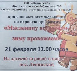 Праздник с играми и угощениями пройдет 21 февраля В поселке Ленинский в Шарье состоится большой масленичный праздник. Мероприятие пройдет 21 февраля 2026 года на детской игровой площадке. Начало в 12:00, вход свободный для всех желающих. Организаторами выступили ТОС «Ленинский», филиал городской библиотеки №2 и активисты «Движения первых». Для гостей подготовили насыщенную игровую программу с традиционными